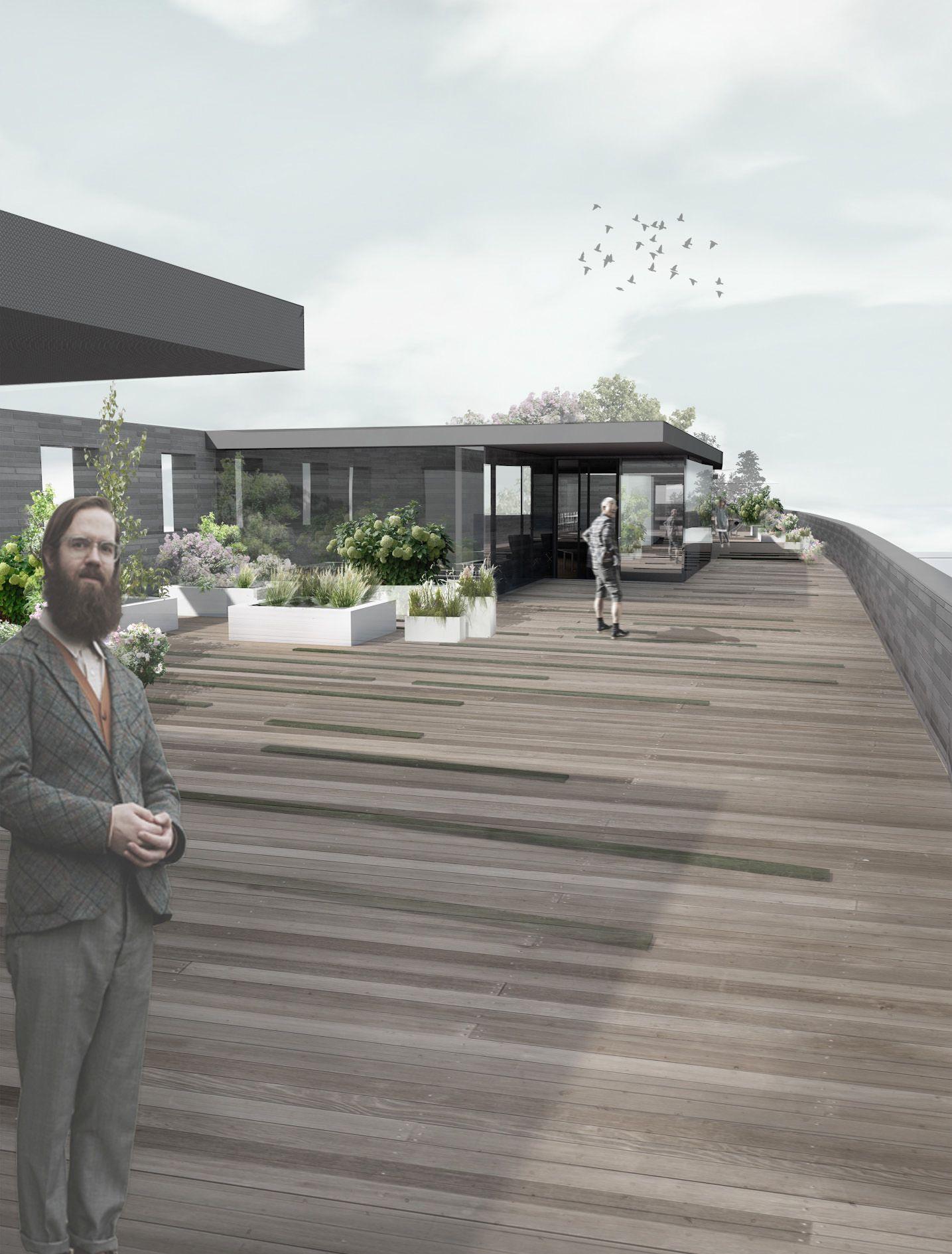 Der Entwurf schließt U-förmig den Block und schafft dadurch eine bestmögliche Schallschutzmaßnahme für die dahinterliegende Wohnbebauung. Ein Hochpunkt am Candidplatz markiert den Wettbewerbsumgriff und gibt ihm eine Adresse im städtischen Gefüge. Ein neu gestaltetes Verkehrskonzept, dass die Candidstraße auf eine Spur reduziert, trägt zur Entstehung einer lebendigen Platzsituation mit Einzelhandels- und Gastronomieangeboten bei. Die Erdgeschossebene bleibt größtenteils für Anwohner nutzbar und bietet helle, freundliche Zugänge zu den Wohnungen und großzügige Durchgänge, der den öffentlichen Raum mit dem privaten Innenbereich verbindet.