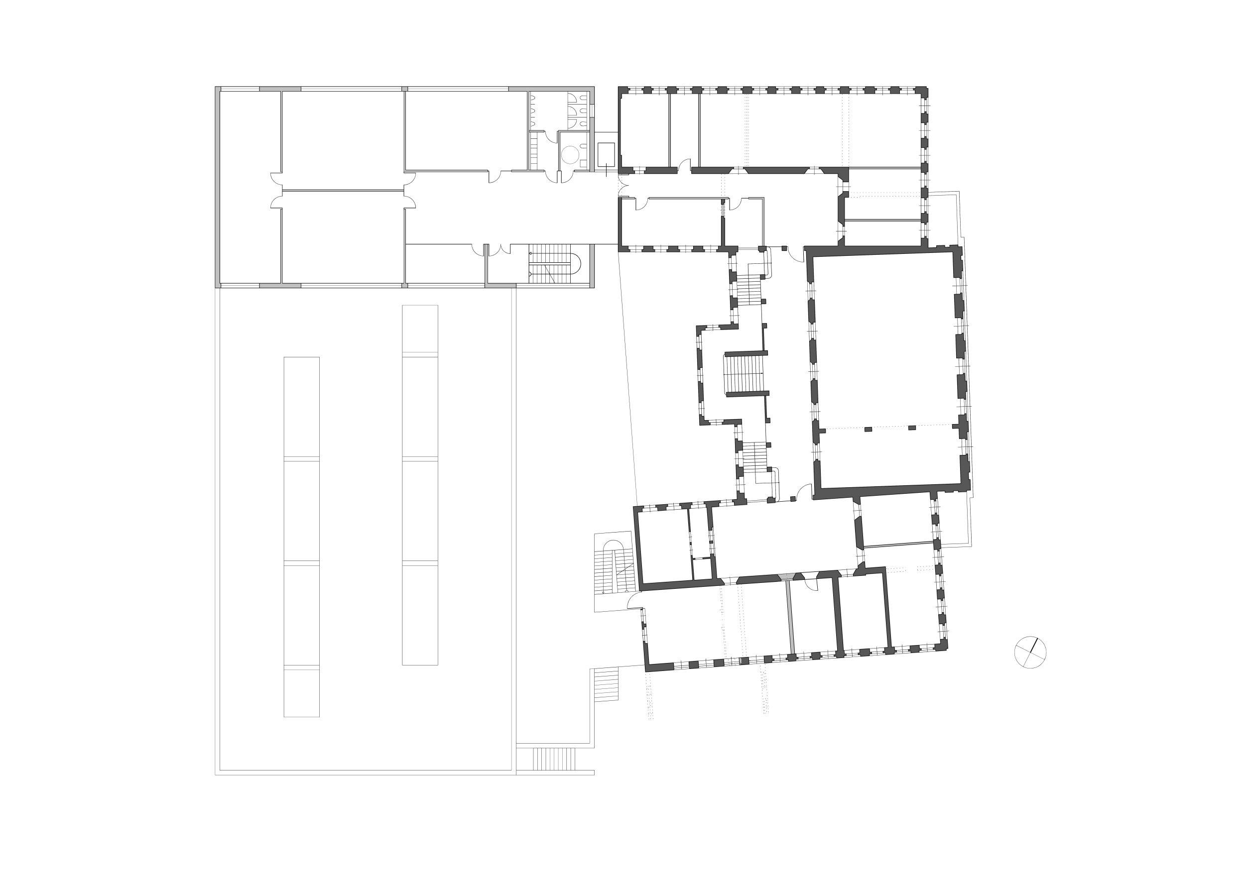 Ein zentraler Haupteingang wird an der Weintraubenstraße platziert und bildet als Fuge die Verbindung zwischen dem Neubau und dem bestehenden Altbau. Dieser Zugang bildet nicht nur ein neues „Eingangstor“ zum Schulkomplex, sondern ermöglicht den Sportvereinen einen direkten Durchgang zur Sporthalle.