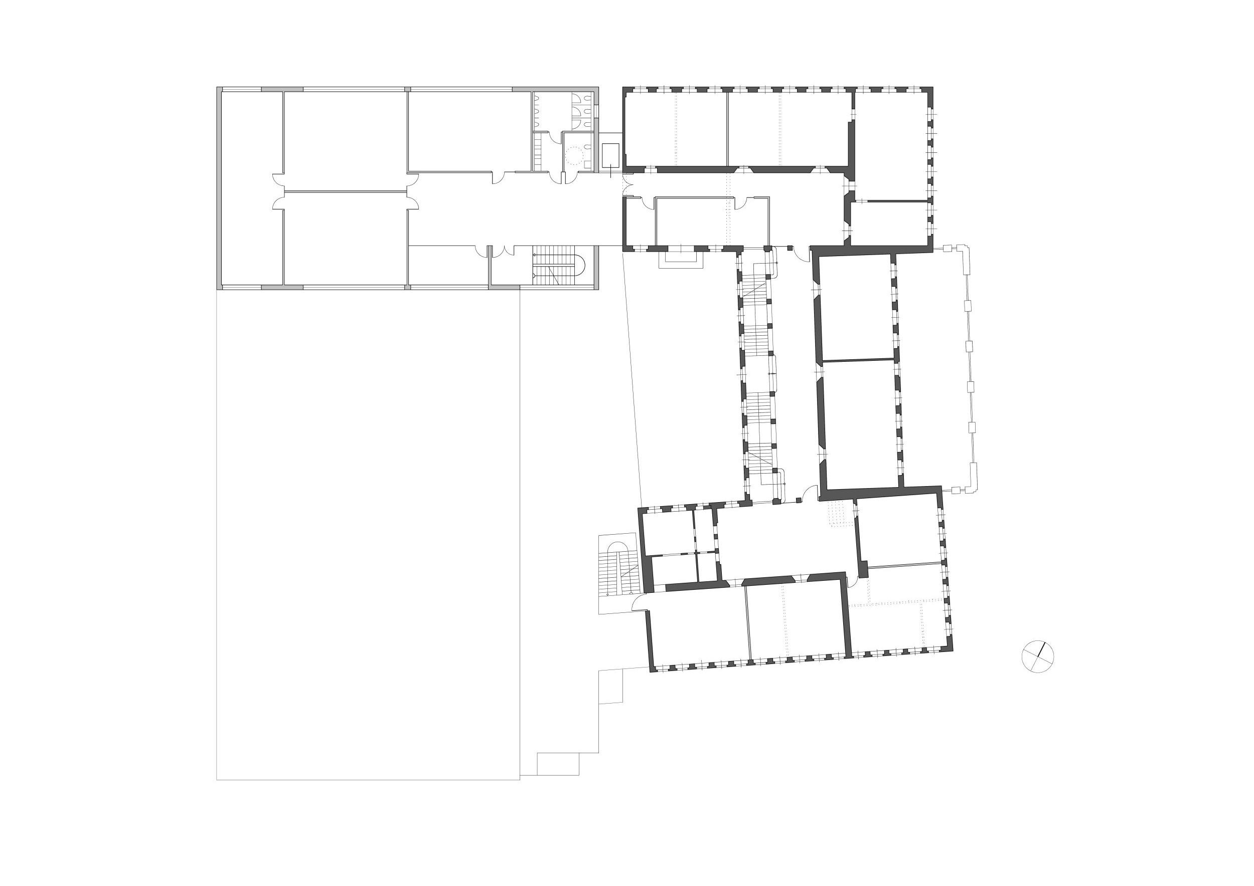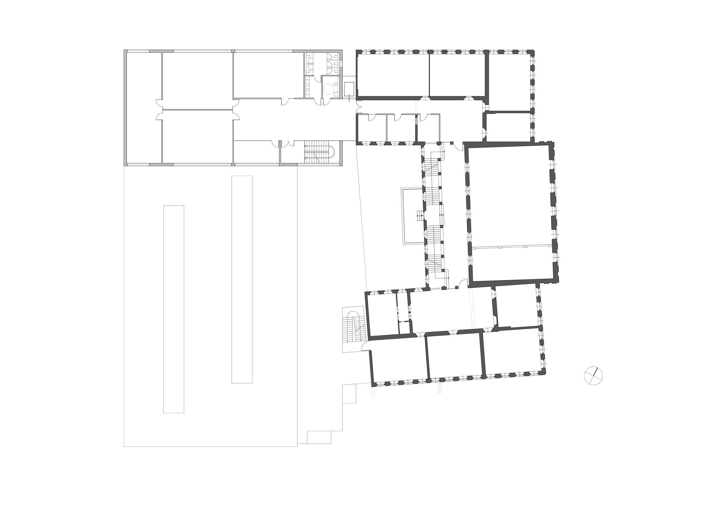 Um das ehemalige Ensemble wieder mehr zusammenzurücken, haben wir die Baulücke in der Weintraubenstraße mit dem Neubau für Fachkabinette, der „Wissenskommode“ geschlossen.